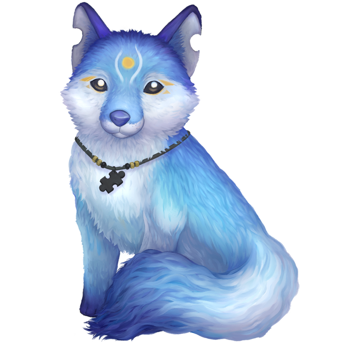 Kiko is a she-wolf leader from the mountains of Hokkaido, Japan.She was in line to become the next successor of her pack; but due to her strange blue-colored fur, her pack shunned her. Kiko decided to venture out and explore the world, finding a pack of her own.Kiko wears a puzzle piece necklace, which symbolizes her new pack’s crest.