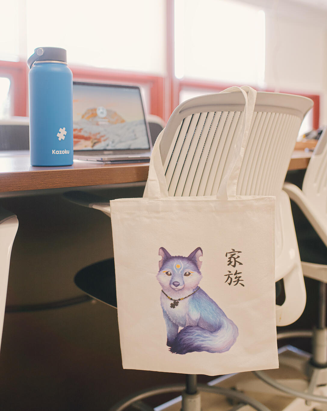 Bundle Includes:♦ Official Kazoku Kiko Sticker♦ Official Kazoku Puzzle Sticker♦ Official Kazoku Kiko Tote♦ Crystal Wolf T-shirt♦ Thermal Water Bottle